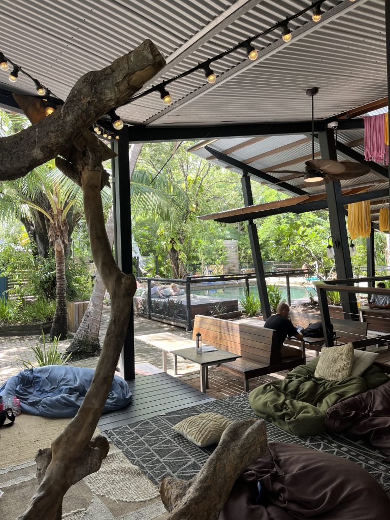 Tras dejarme el ferry en Nelly Bay, tomé un autobús hasta Horseshoe Bay dónde se encontraba mi alojamiento. La isla es bastante pequeña y cuenta solo con una carretera que conecta las 5 localidades principales. Me alojé en un hostel muy guay llamado Bounce Magnetic Island, antes llamado Selina o algo así, cuando estuve yo. Tiene una recepción enorme, cuenta tanto como con cabañas con varias camas estilo hostel y tiendas de campaña individuales o para grupos. Tiene piscina, bar, alquilan skates y bicis y además puedes ver koalas salvajes. Sin duda, uno de mis favoritos en Australia aunque solo me quedé una noche.