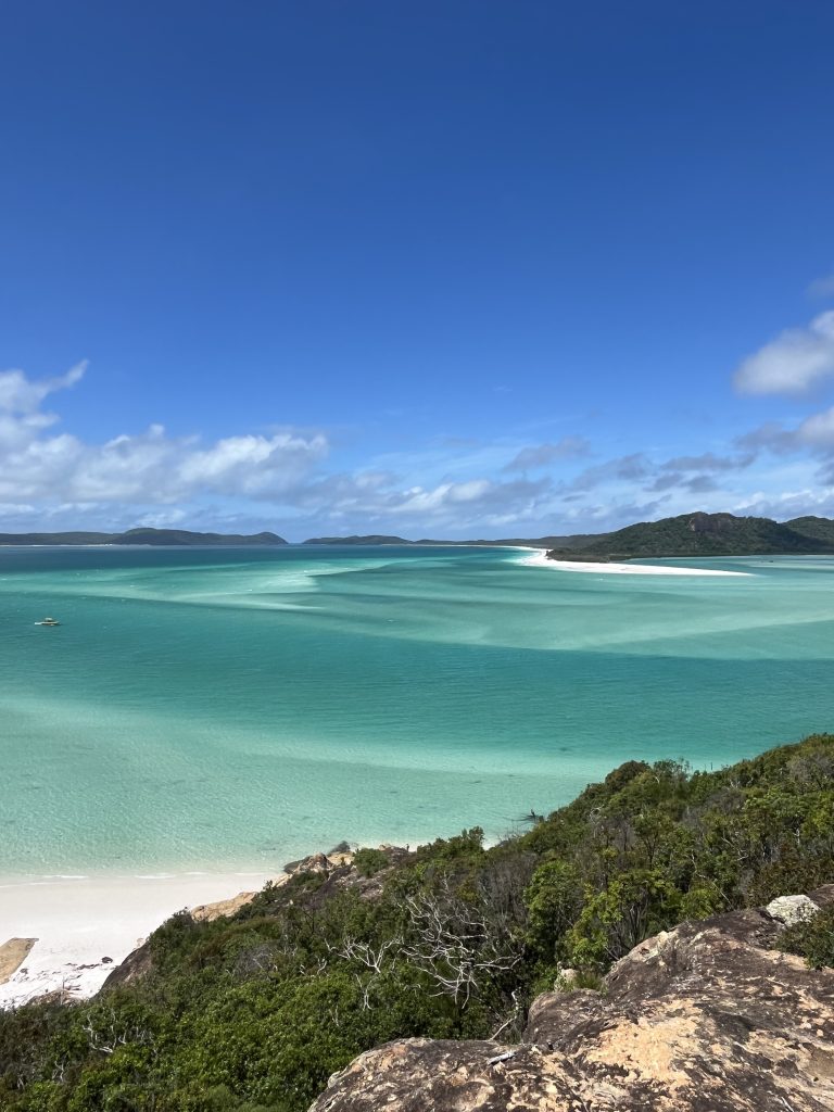 En el tour, recuerdo que el primer día paramos para hacer snorkel y luego a la tarde atracamos frente a Whitehaven Beach para pasar la noche. Así al día siguiente, pudimos disfrutar a pie de la playa solo para nosotros. Una de las más bonitas del país y donde incluso se rodaron escenas de Piratas del Caribe. Pudimos incluso dar un pequeño paseo hasta el mirador de South Whitehaven. Después, atracamos en Hill Inlet para de nuevo ir andando hasta Tongue Bay y maravillarse de las vistas a los surcos de arena cuando baja la marea. Una de las postales y de los paisajes más bonitos que vi en Australia.